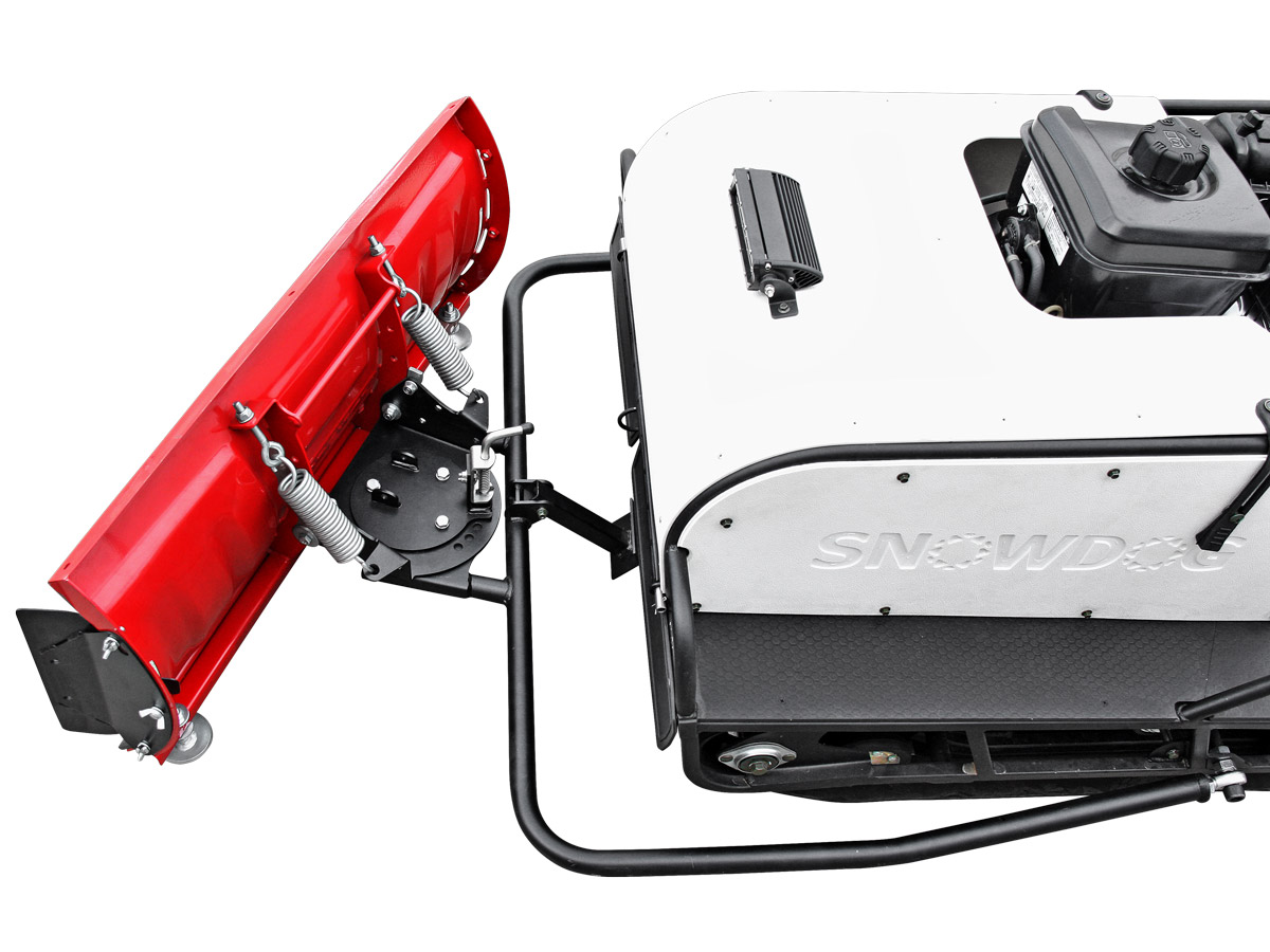 Данные снегоотвалы устанавливаются на мотобуксировщиках Snowdog Twin Track. Наличие реверс-редуктора с пониженной передачей позволяет комфортно перемещаться со скоростью шага (4–6 км/ч).